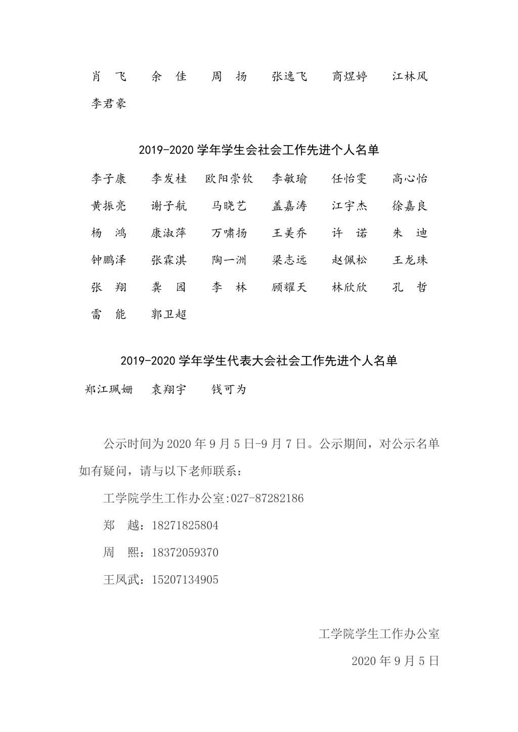 云顶赌场 关于2019-2020学年学生社会工作先进个人评选结果的公示