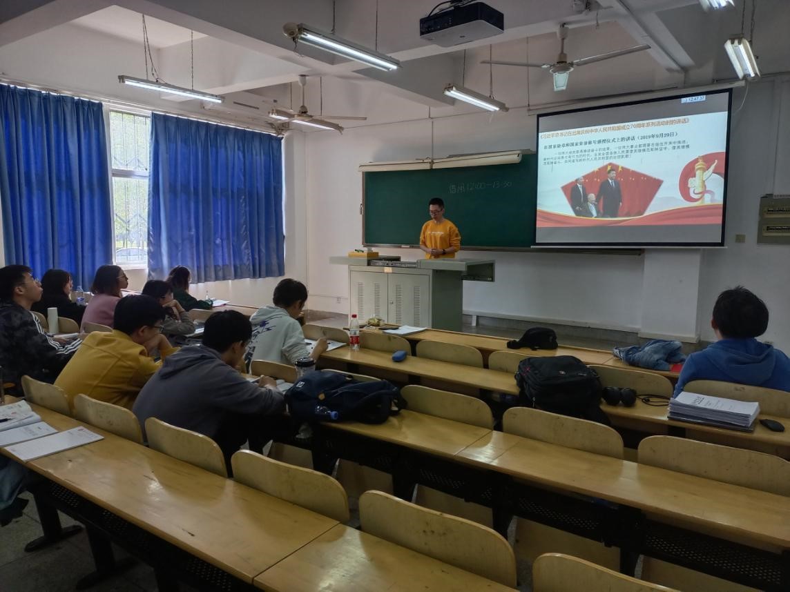 紧接着,他带领大家进行了微党课学习,本次学习的主要内容有《在纪念中国人民抗日战争暨世界反法西斯战争胜利75周年座谈会上的讲话》、《习近平总书记在出席庆祝中华人民共和国成立70周年系列活动时的讲话》、《习近平在教育文化卫生体育领域专家代表座谈会上的讲话》等讲话精神。肖逸同志也鼓励大家扎根于班级同学中,为班级同学谋福利,帮助班级同学解决问题,同时也提醒大家在学习中要努力上进,争取以后能够更好地服务国家和社会。