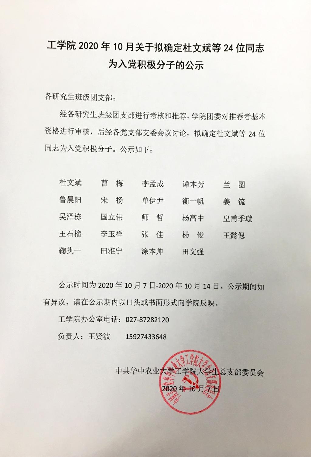 云顶赌场 2020年10月关于拟确定杜文斌等24位同志为入党积极分子的公示