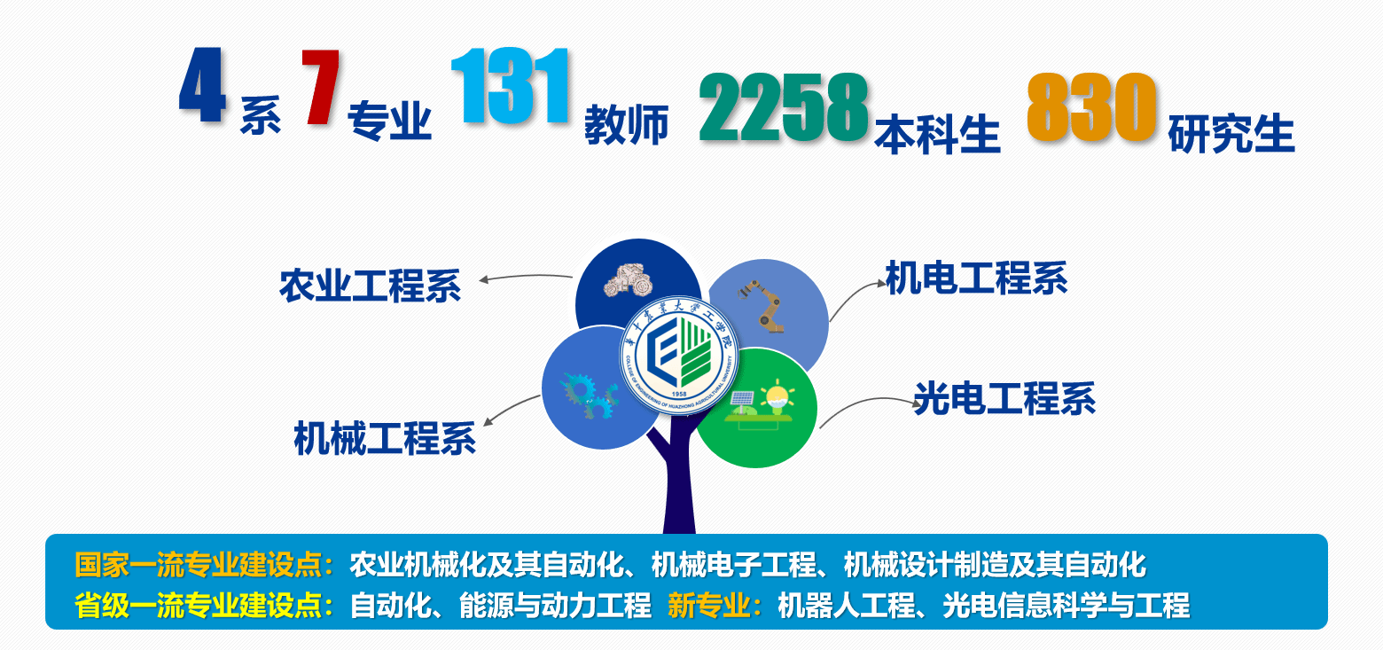 获批设立“智慧农业技术与装备”省级优势特色学科(群),国家一流本科专业建设点3个、省级一流本科专业建设点2个,新增光电信息科学与工程、机器人工程2个专业;获湖北省教育教学成果和科技成果一等奖等省部级奖励5项;获省部级以上科研项目200余项,新增省部级科研平台3个,国家级高层次人才4人次等。工学人用实际行动诠释着“明大德、问大学、笃大行”的价值使命。