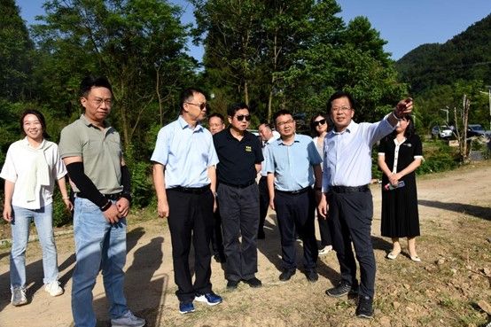 ▲省人大常委会副主任杨云彦等在七彩药王谷产业振兴园调研