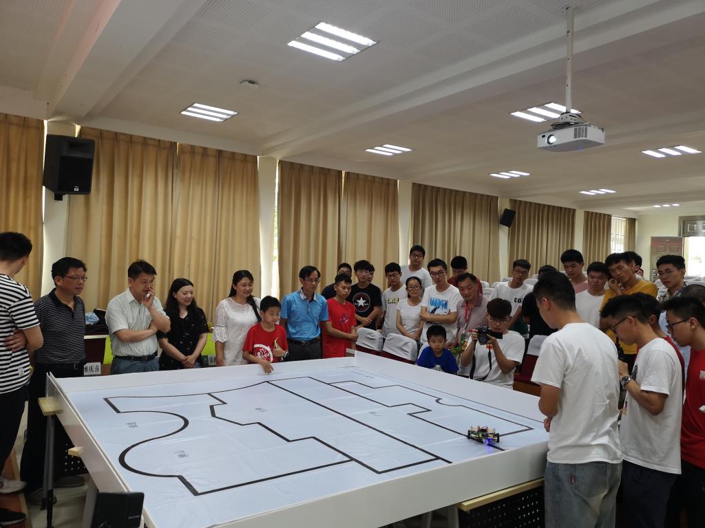 随着主持人发出开赛指令,智能小车在寻迹传感器的引导下沿着赛道行驶。各队的小车各显所长,现场比赛氛围紧张激烈,多数小车动作灵敏并按规则驶完赛道全程。决赛从作品的功能、外观和创新点等方面进行综合评价,最终评选出一等奖2项、二等奖4项、三等奖8项。